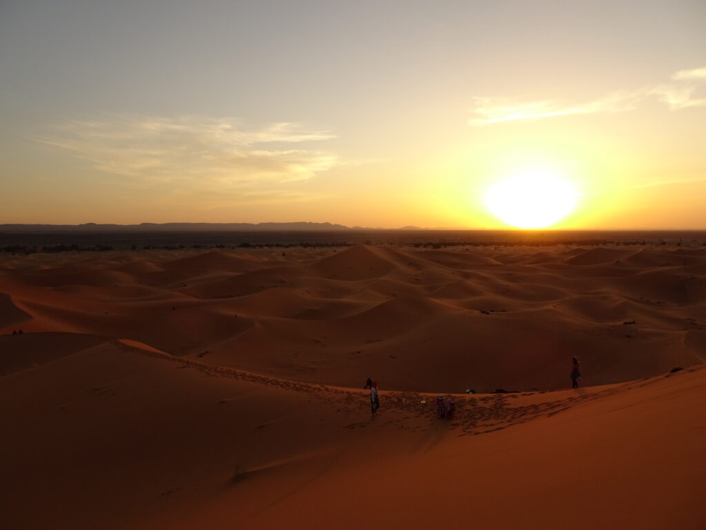 見渡す限り、赤砂の砂丘が広がっているなか、大きな太陽がゆっくり沈んでいく光景が美しすぎて