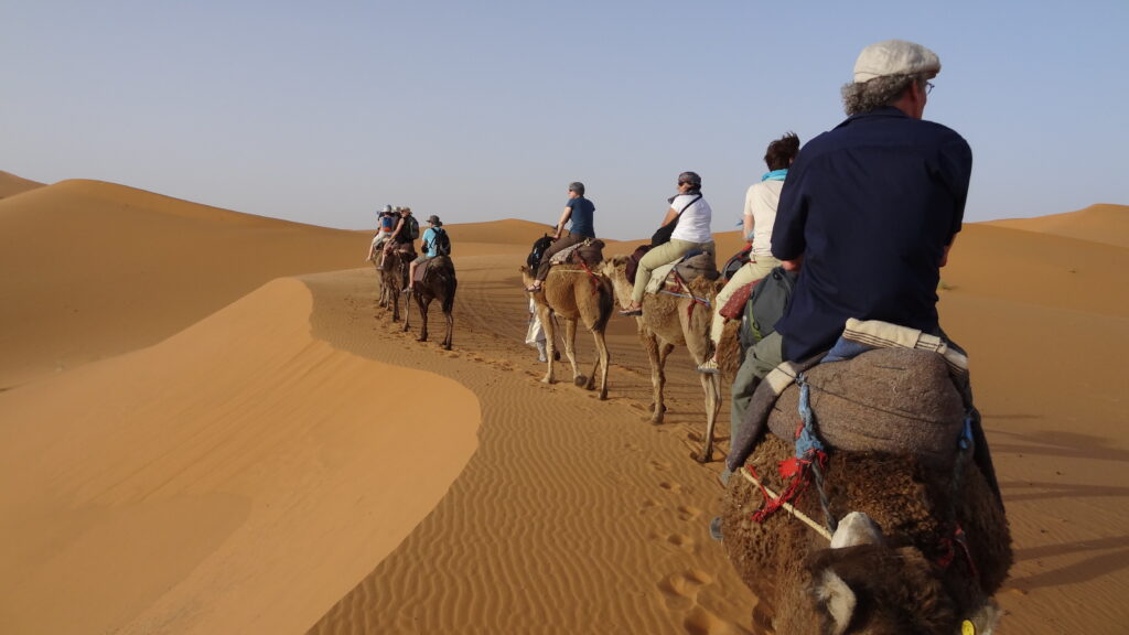 砂漠入口、文字通りホテルの裏側がそのまま砂漠!のホテルで1泊し、夕方からキャメルに乗って砂漠のテントへ向かいます。